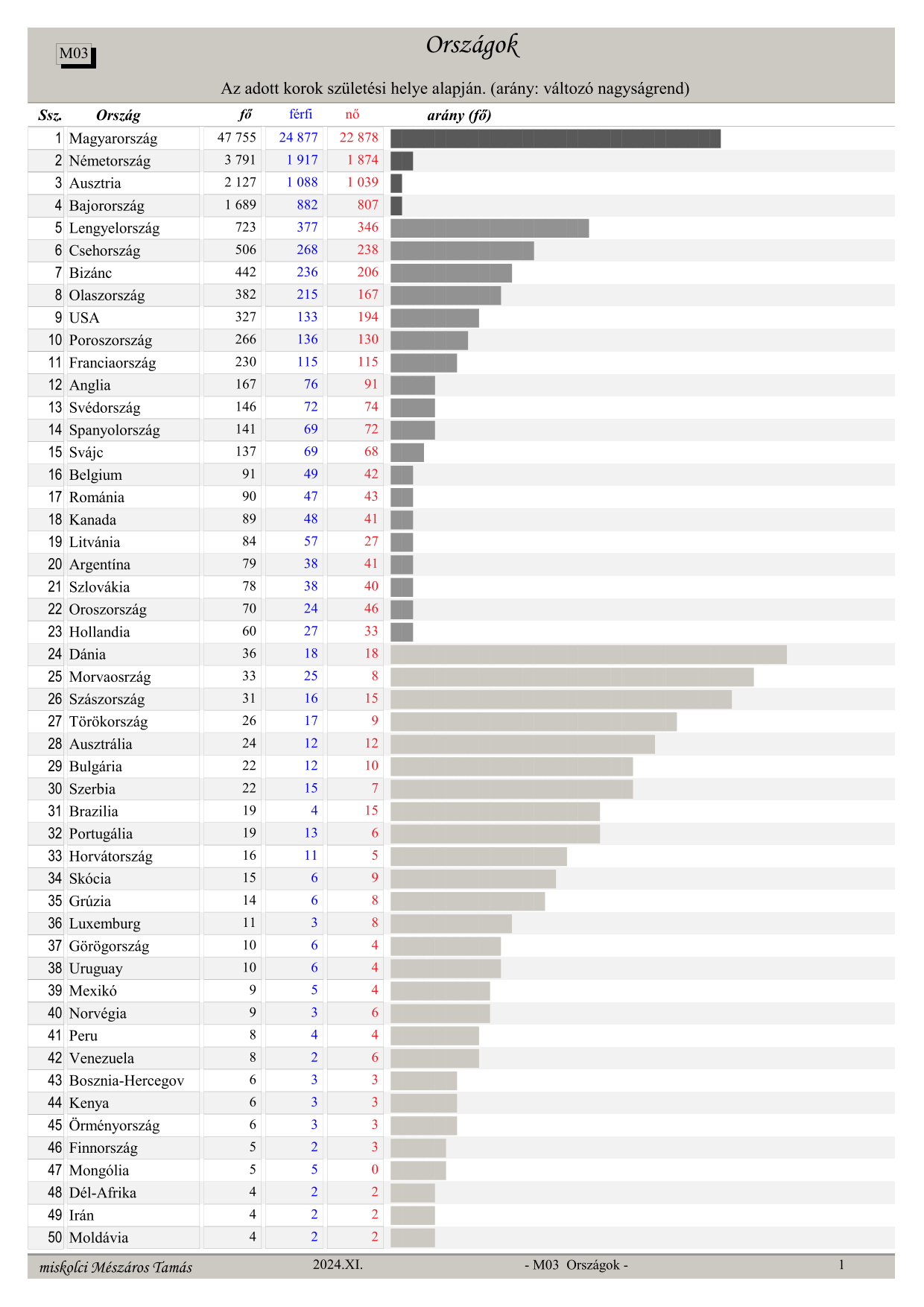 M03 Országok (Countries) Based on the place of birth in the given eras