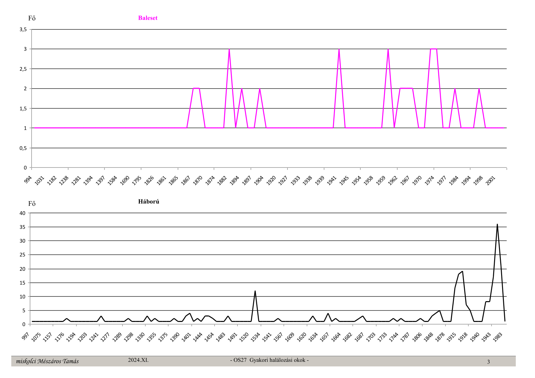 OS27 Gyakori halálozási okok – váratlan (Frequent causes of death – unexpected) (persons) 1. Underdevelopment/Infirmity 2. Childbirth 3. Senility 4. Weakness 5. Accident 6. War