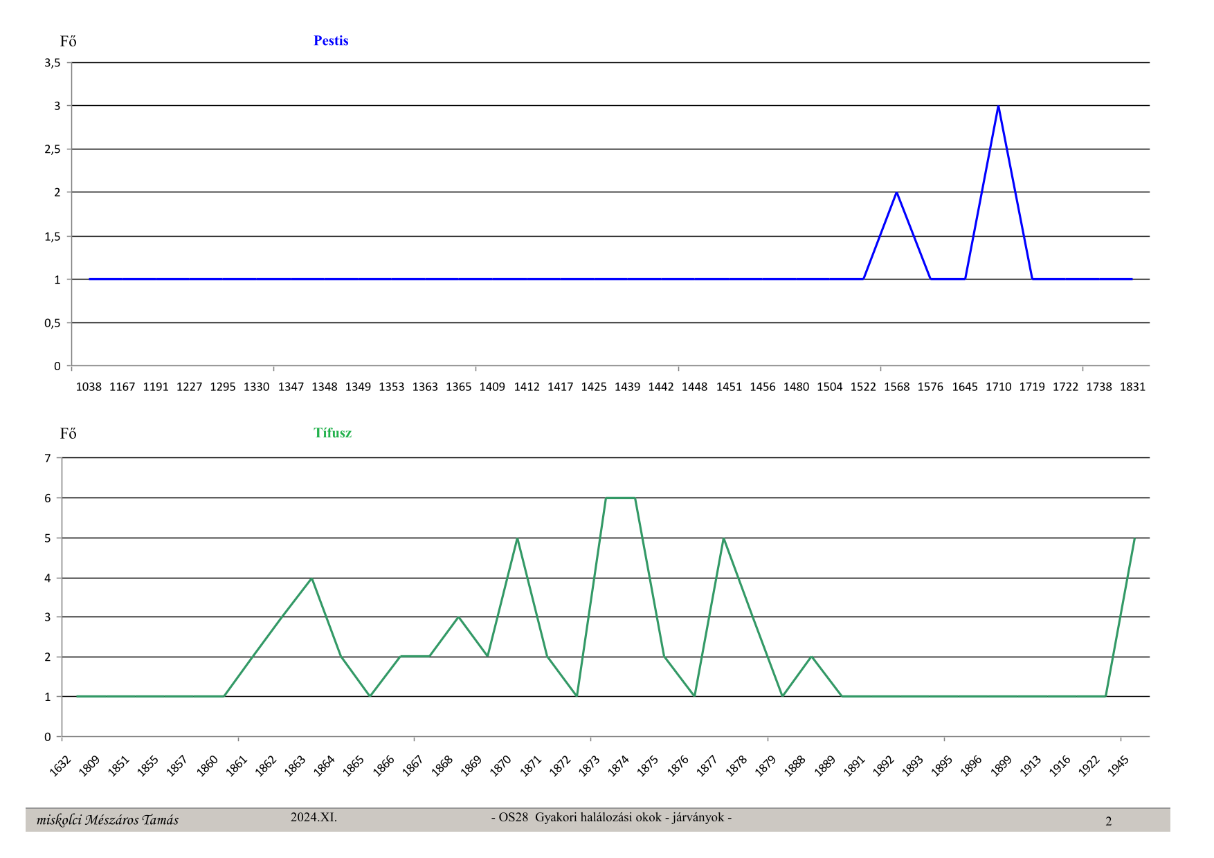 OS28 Gyakori halálozási okok – járványok (Frequent causes of death – epidemics) (persons) 1. Smallpox 2. Cholera 3. Plague 4. Typhus 5. Measles 6. Scarlet fever